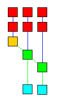 larger number of one-input nodes). The various nodes are color-coded