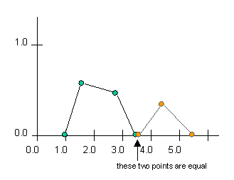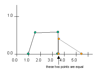 If the point 0.25/1.5 was inserted by this method, the result would be: 0/1 0.25/1.5 1/2 1/4 0.5/4 0/5. If the point 0.75/4 was inserted, the result would be: 0/1 1/2 1/4 0.5/4 0.75/4 0/5. Therefore, it is important to note that if a point is inserted and it's x value is the same as that of an existing point, it will be inserted into the FuzzySet at a position after the existing point with the same x value.