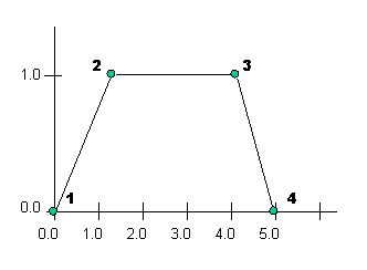 These four points are a fundamental characteristic of the LRFuzzySet. The LRFuzzySet will always be normal and convex, as the membership function of the beginning and end points is always 0.0, and the FuzzySet will always reach unity (whether contact with unity is extended or not; in other words, points 2 and 3 can have either different x values, or the same, depending on the shape of the LRFuzzySet desired), but never more than once. The x values of these four points are required from the user to construct a LRFuzzySet.