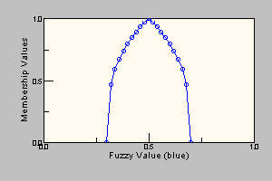 This has the effect of emphasizing the sections of the FuzzyValue that have a membership value greater than 0.5, and understating any sections of the FuzzyValue with a membership value less than or equal to 0.5.