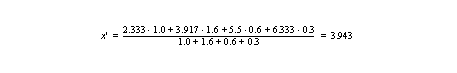(1.0*0.9 + 4.0*1.0) / (0.9 + 1.0) = 2.579