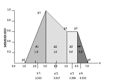 moment of the area of a fuzzy set about the y axis. The set is subdivided into