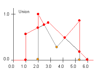 union of two example FuzzySets is depicted below. One set is black with green SetPoints,