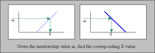 Method getXForMembership for FuzzyValues &FuzzySets – Added a method that when given a membership value returns the first X value that has that membership value. This is most useful with FuzzySets that are strictly increasing or strictly decreasing and cover all membership values (like SFuzzySet, ZFuzzySet, LeftLinearFuzzySet, RightLinearFuzzySet, etc.). Consider the following examples: